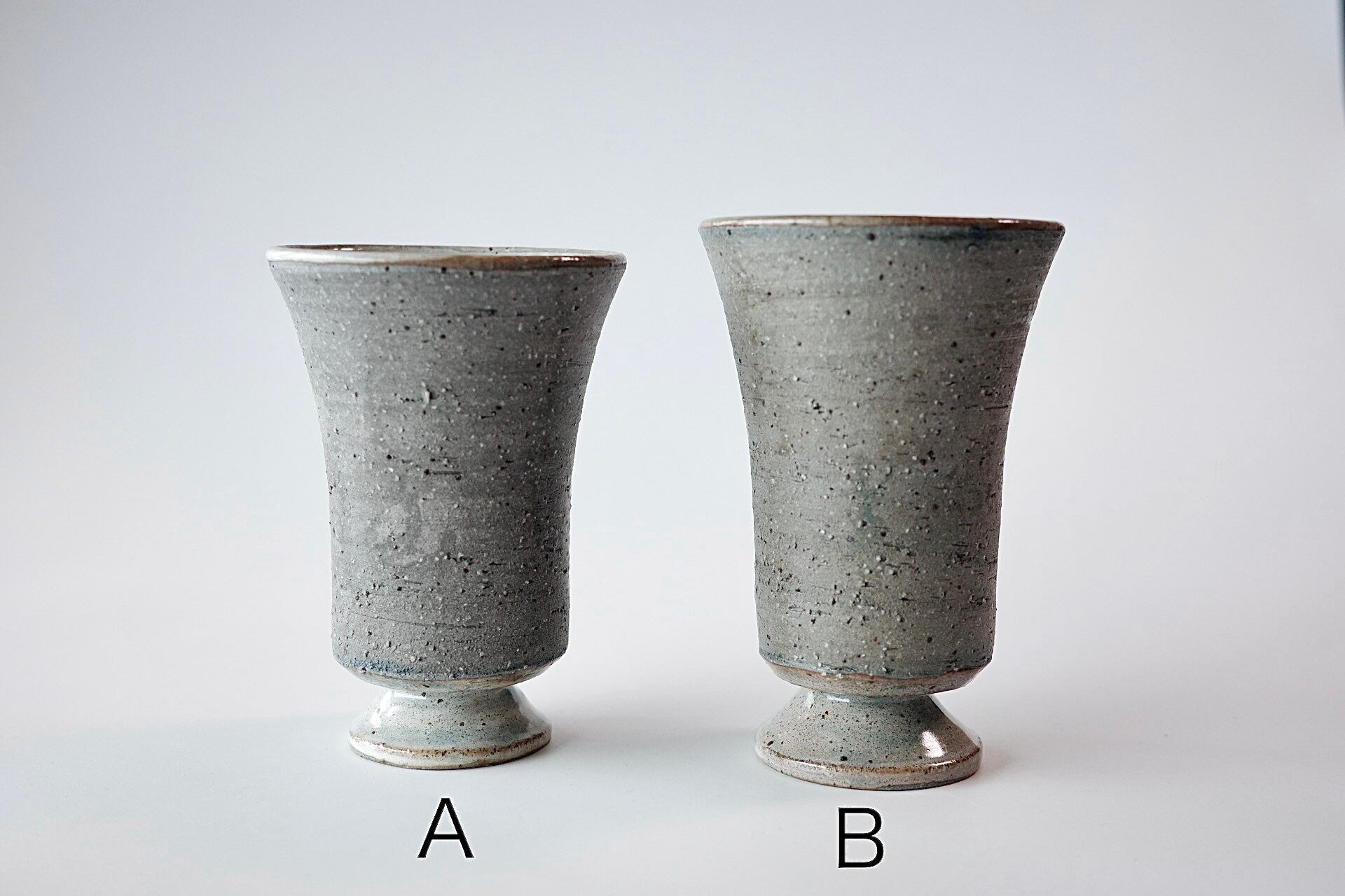 まるか陶工房さんのゴブレットL。グレー御影土を使った、外側がグレー、中がブルータイプです。AB、2種類からお選びいただけます。