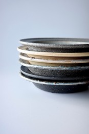 2011年に京都造形芸術大学を修了、沖縄に渡り読谷山焼北窯で6年間修業した後独立し、現在は読谷村に工房を構える。作品は、鉱物を混ぜて生まれる青、緑、灰色、茶、などの様々な色と土の質感が交じり合う、一言では形容できない唯一無二の仕上がり。
