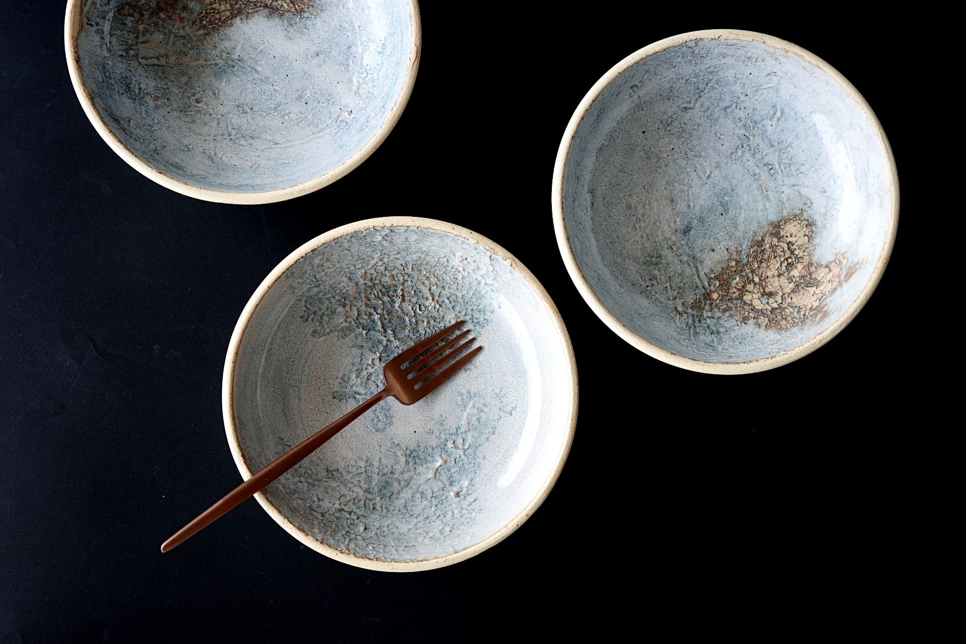 ※すべて作家による手作りの作品ですので、ひとつひとつ形や色合い、表情が異なります。多少の歪みや釉薬のムラ、垂れ、溜まり等が見られる場合がありますが、作品の特性であり、景色、味としてお楽しみください。
