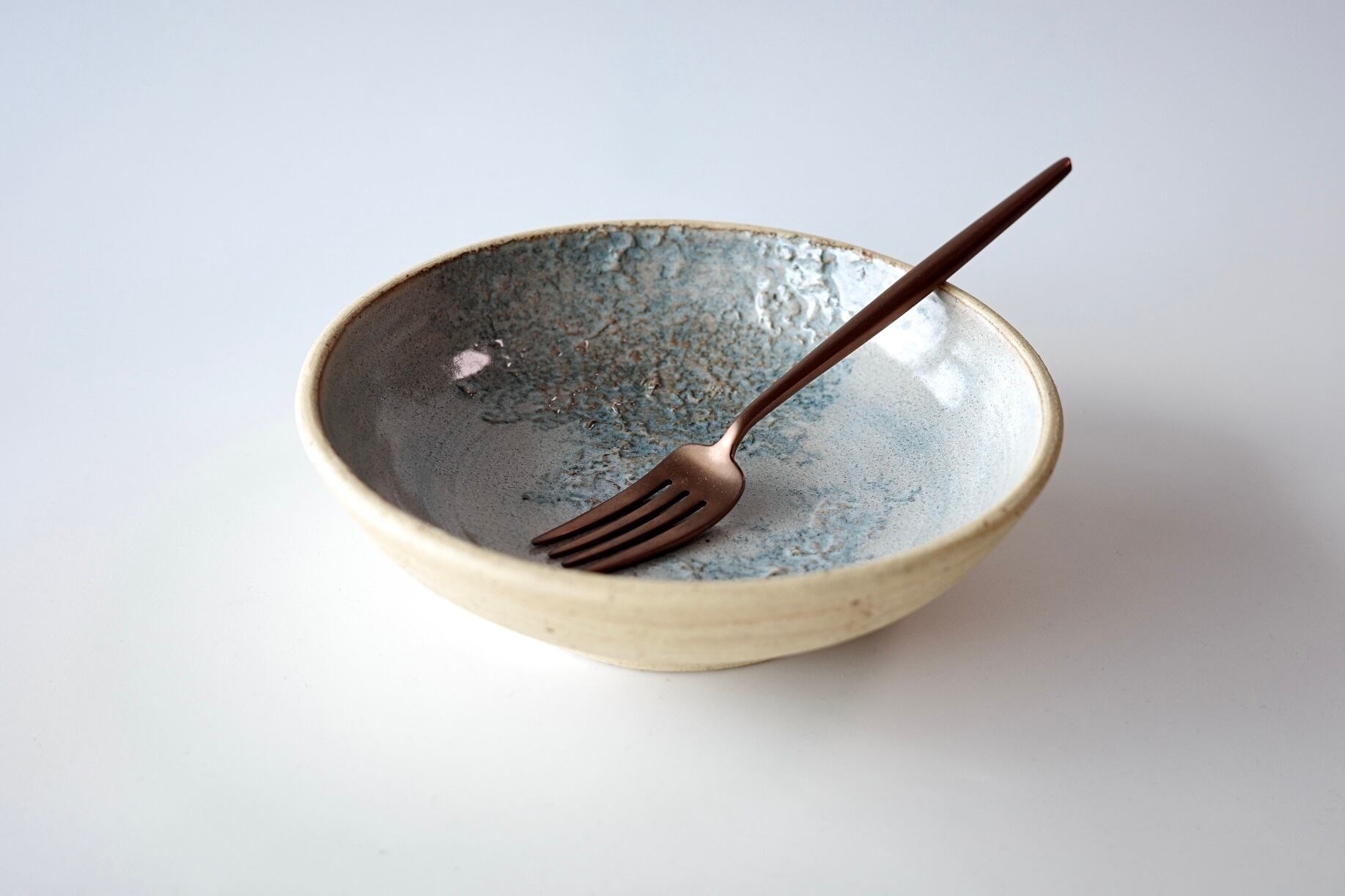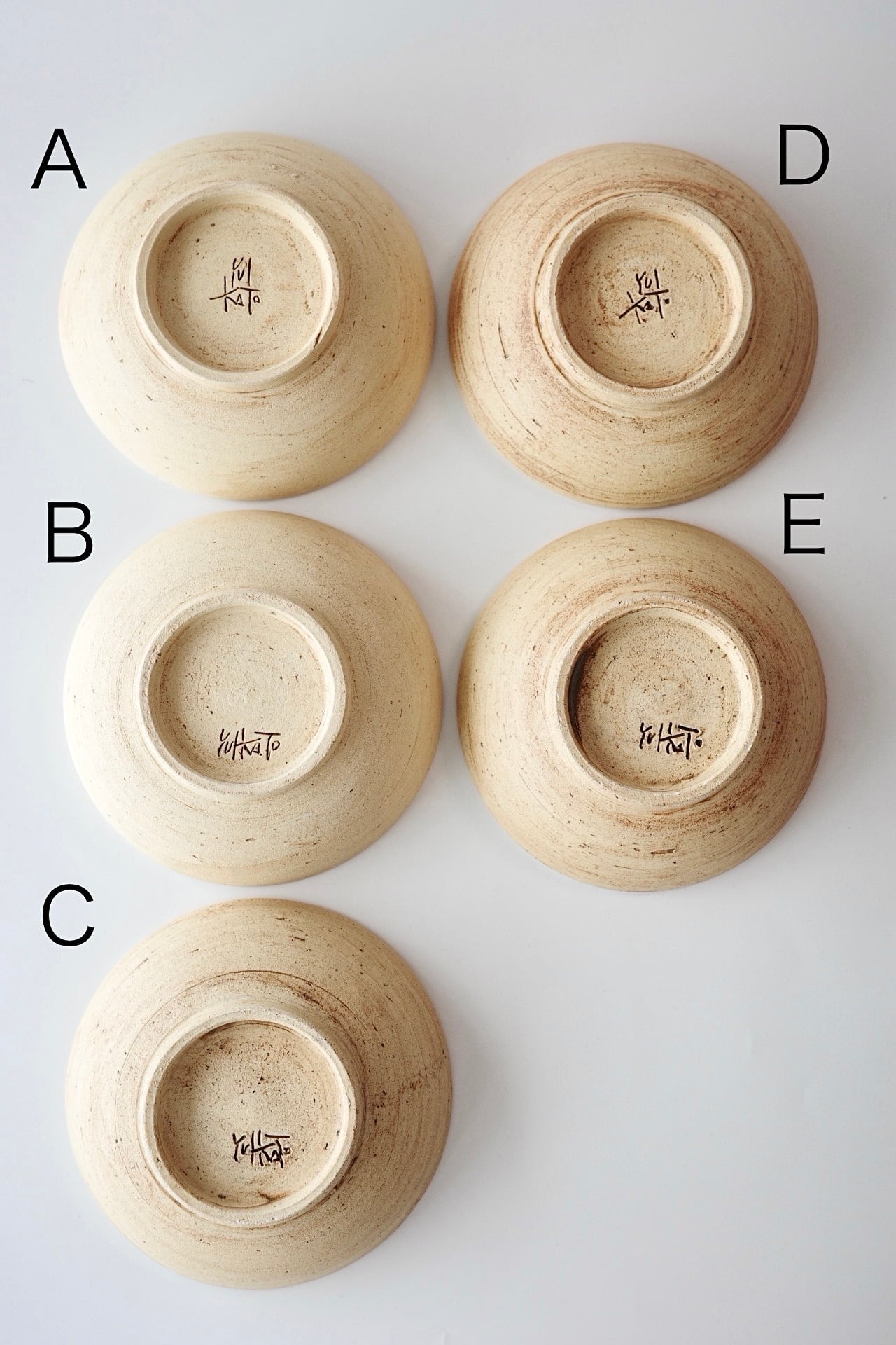 まるか陶工房さんの5寸鉢。少し浅めの丸型です。様々に使えるサイズ感で、スープなどにもおすすめ。ABCDE、5種類からお選びいただけます。