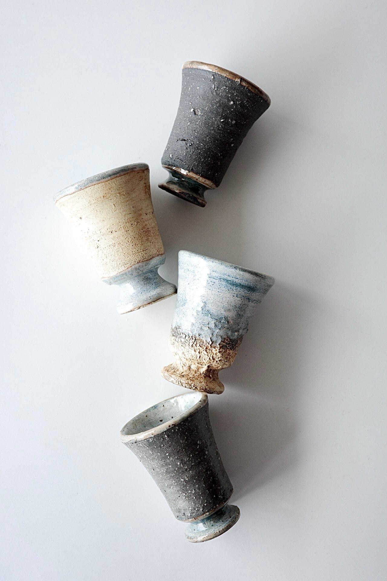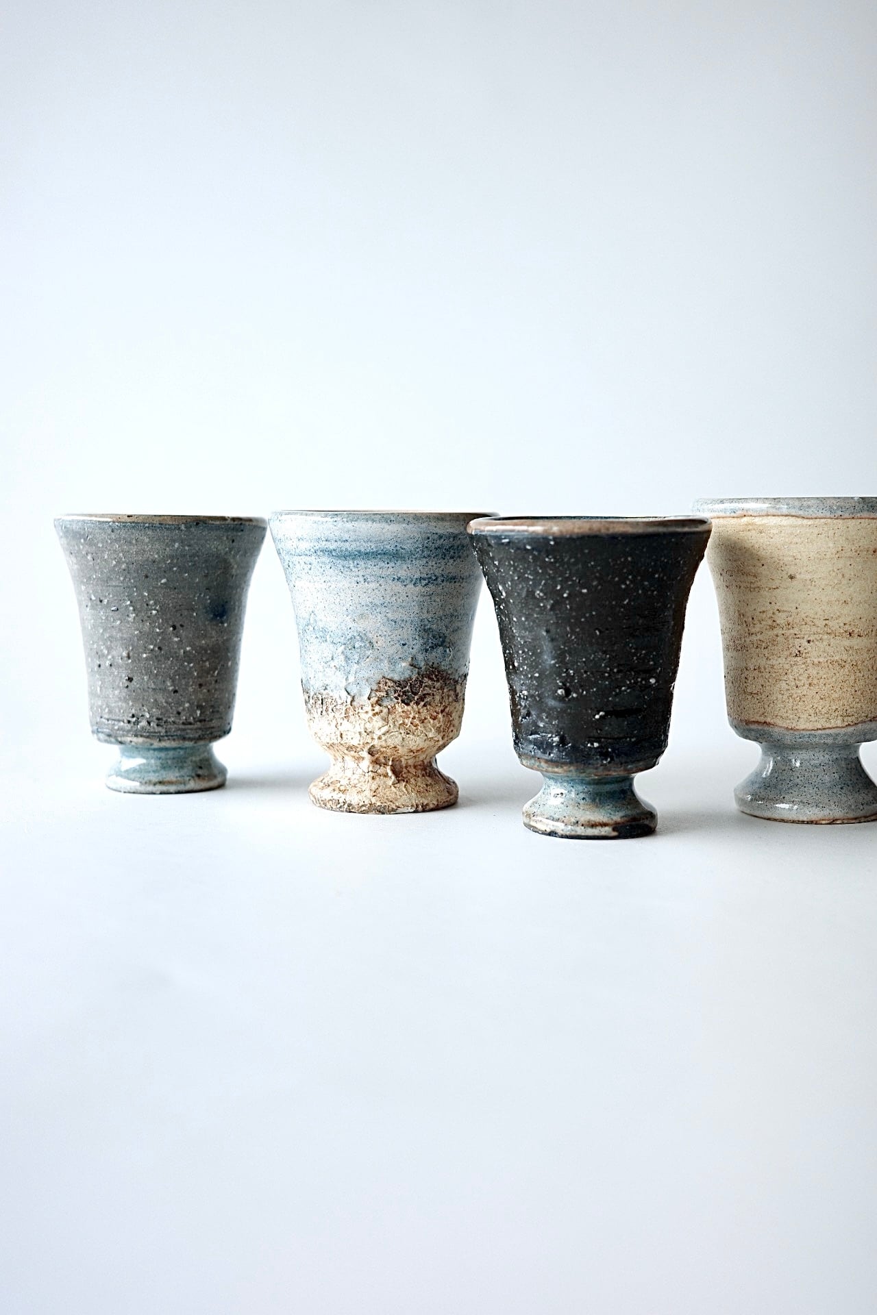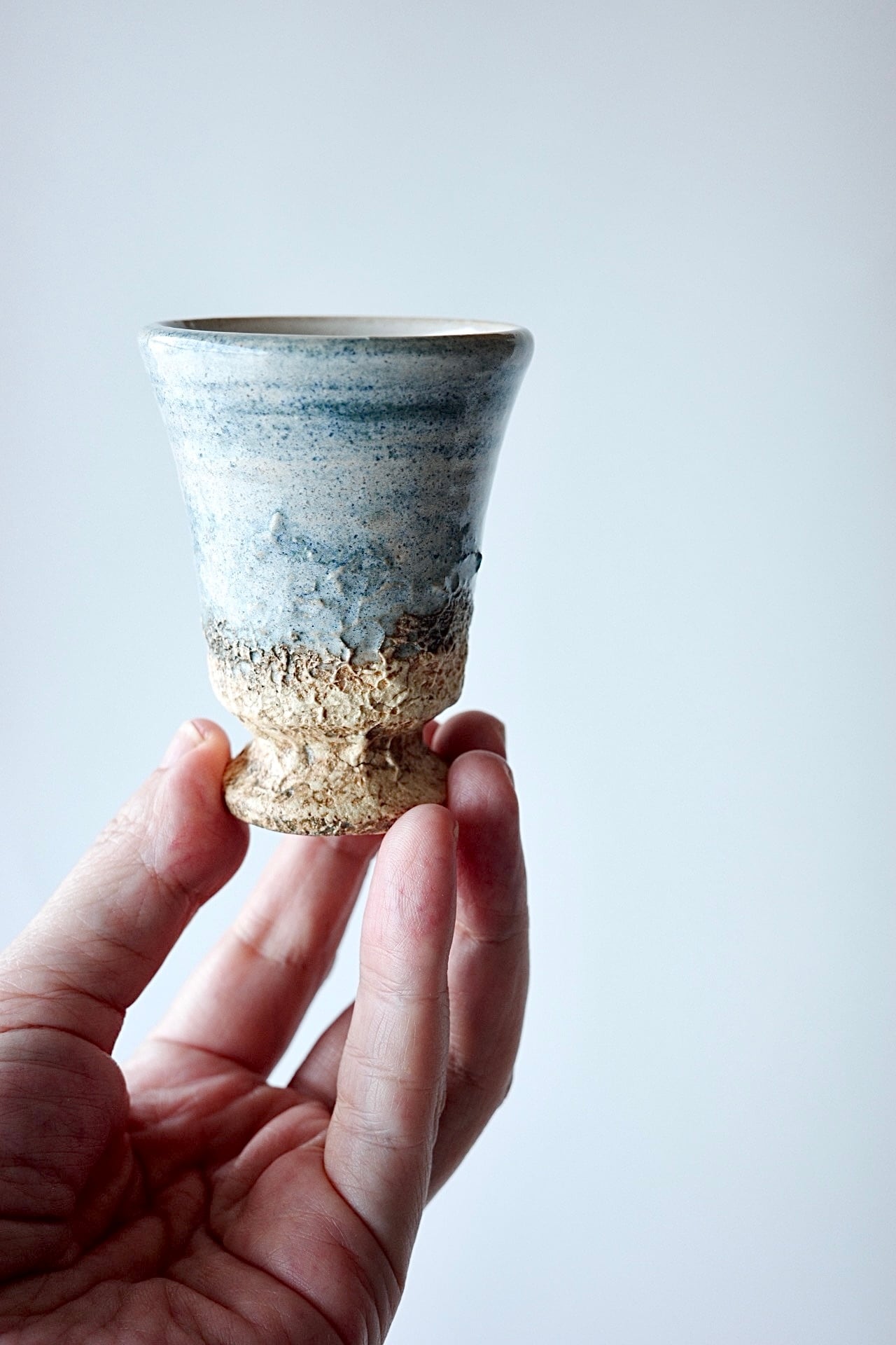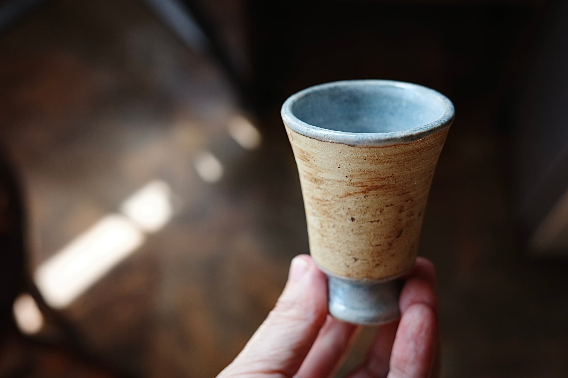 まるか陶工房さんのミニゴブレット。沖縄でのイベントのために作っていただいた新作です。人気のゴブレットをそのまま小さくした形で、ぐい呑としてお酒を飲むのにぴったりなサイズ。一口スープなどにお使いいただくのもおすすめです。