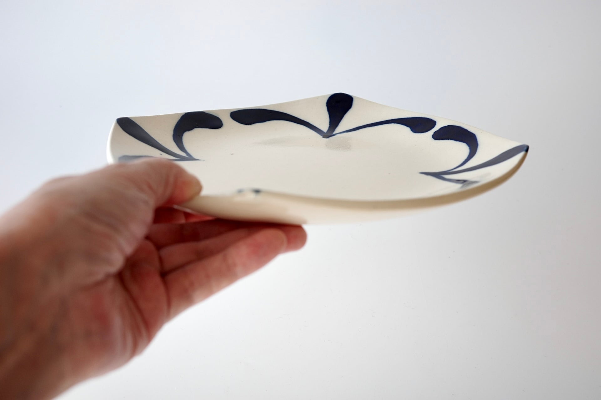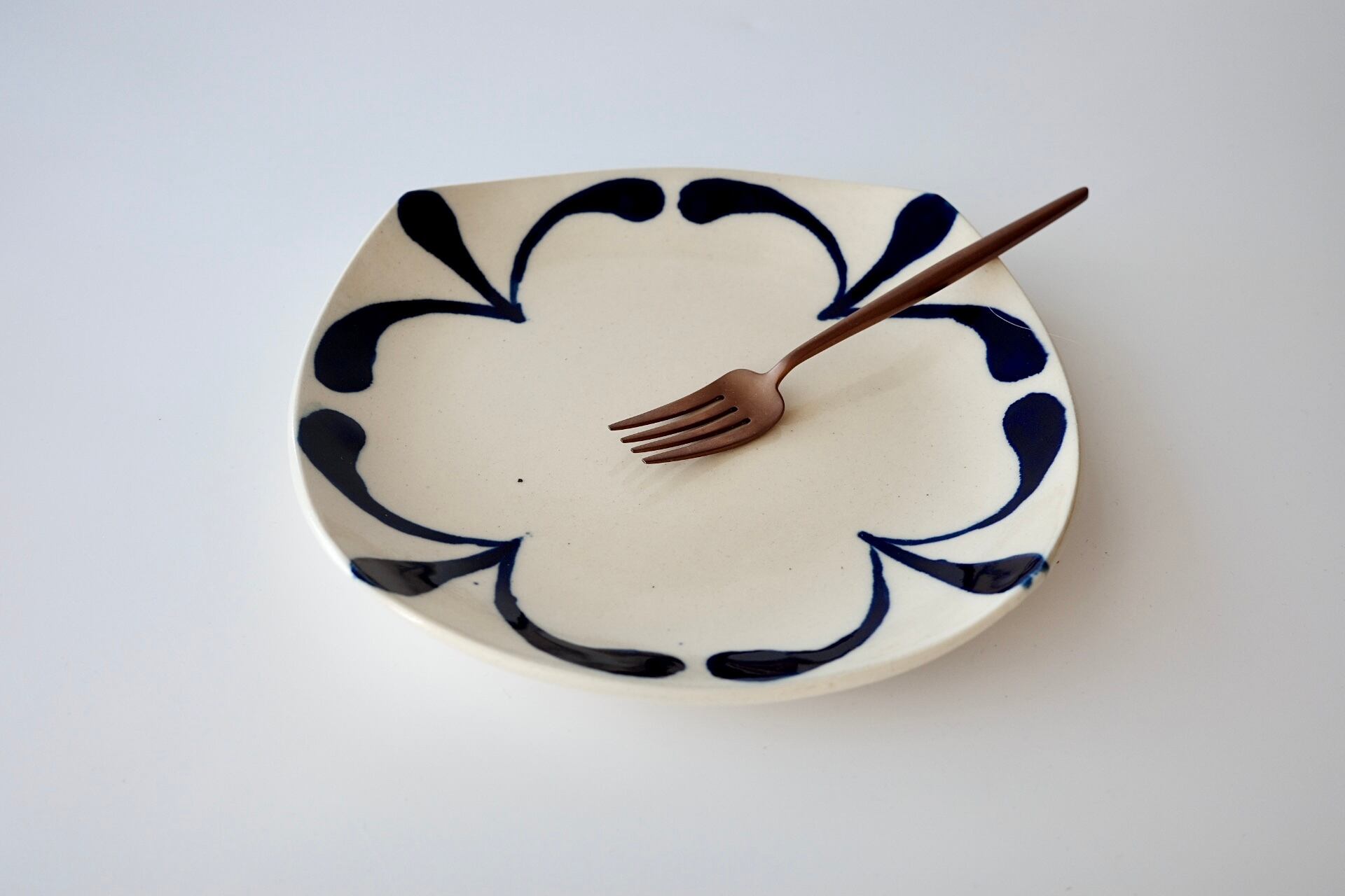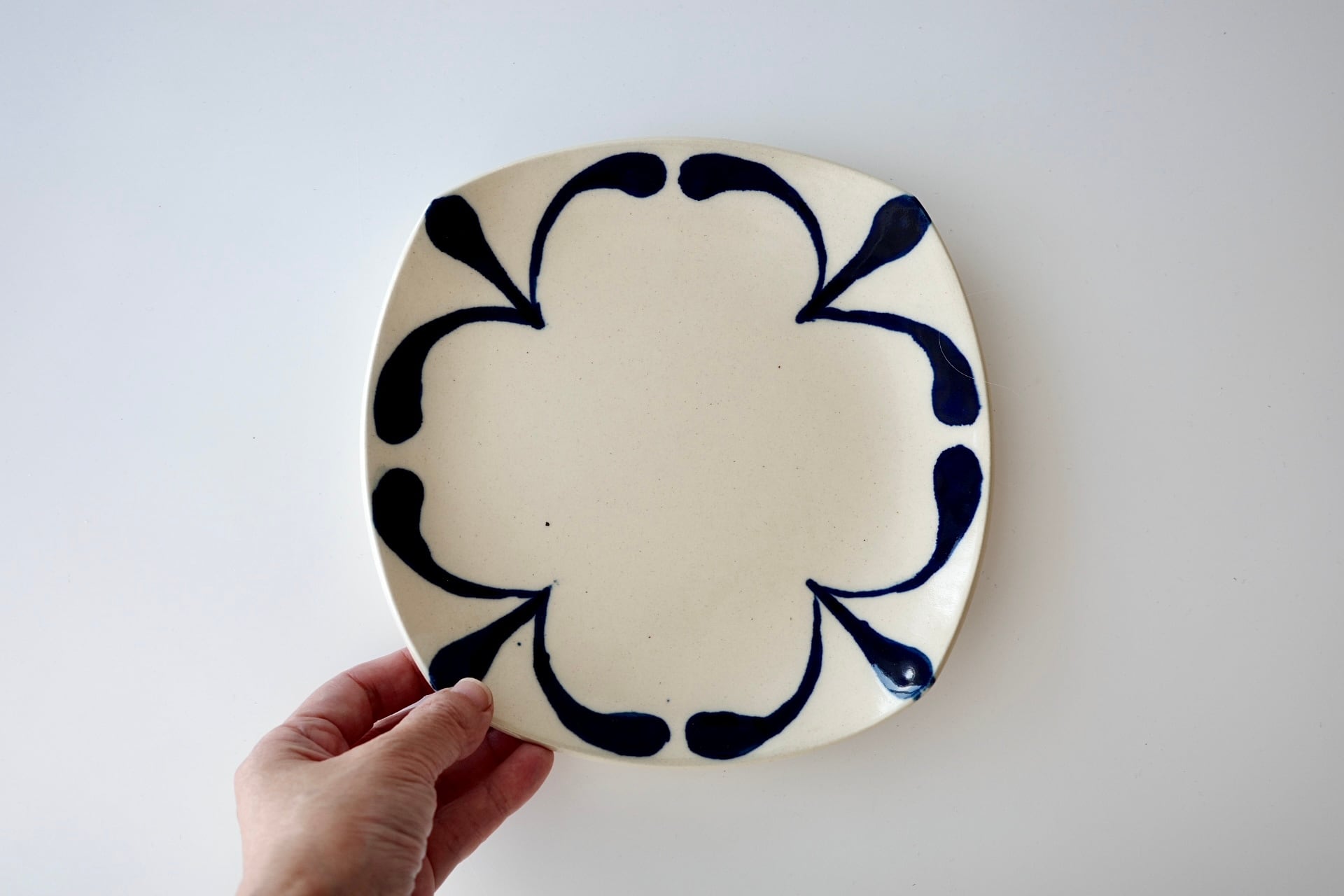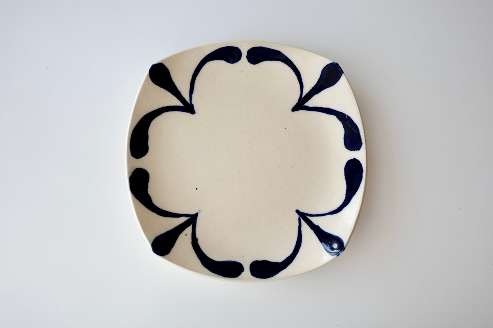 大嶺工房さんの染付四方皿。使いやすいサイズのスクエアタイプの染付皿です。