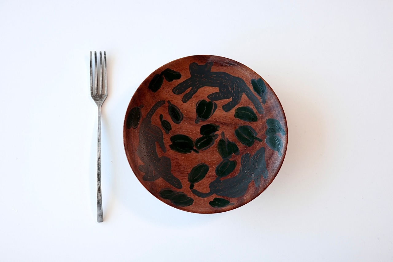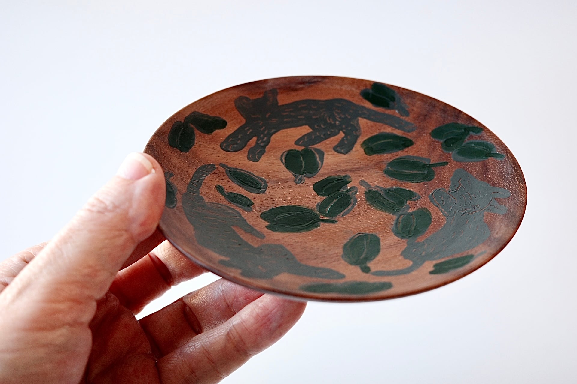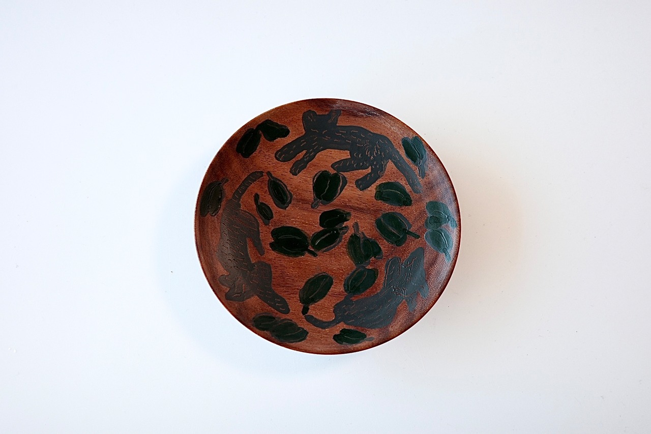 2022年に豊見城に工房を構え、生の木を削り出すグリーンウッドワークという手法を用いて、一つ一つ時間をかけた手仕事でプレート等を制作。沖縄の木に愛らしい黒猫や白猫、ギンネムなどの植物を絵付けし、木目と絵付けの相乗効果で生まれる表情が魅力的な作品を生み出す。