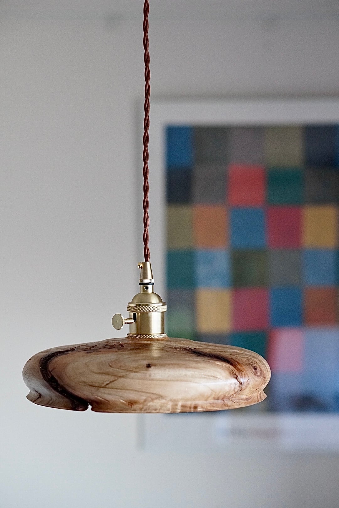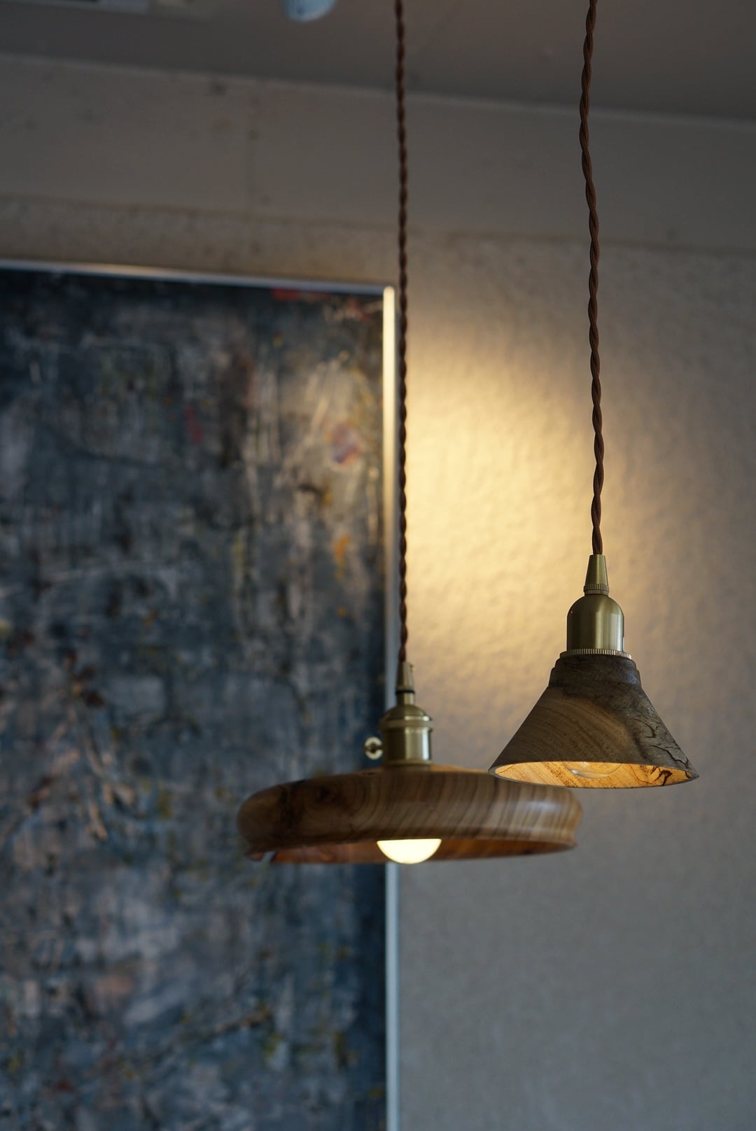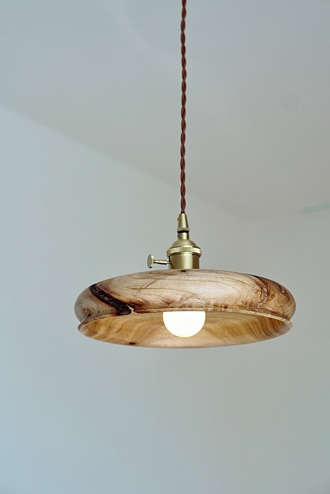 大塚木工さんのランプシェード大。木目の表情とシルエットがとても印象的。クスノキの良い香りも漂う素敵なランプシェードは、お部屋の雰囲気をアップしてくれます。