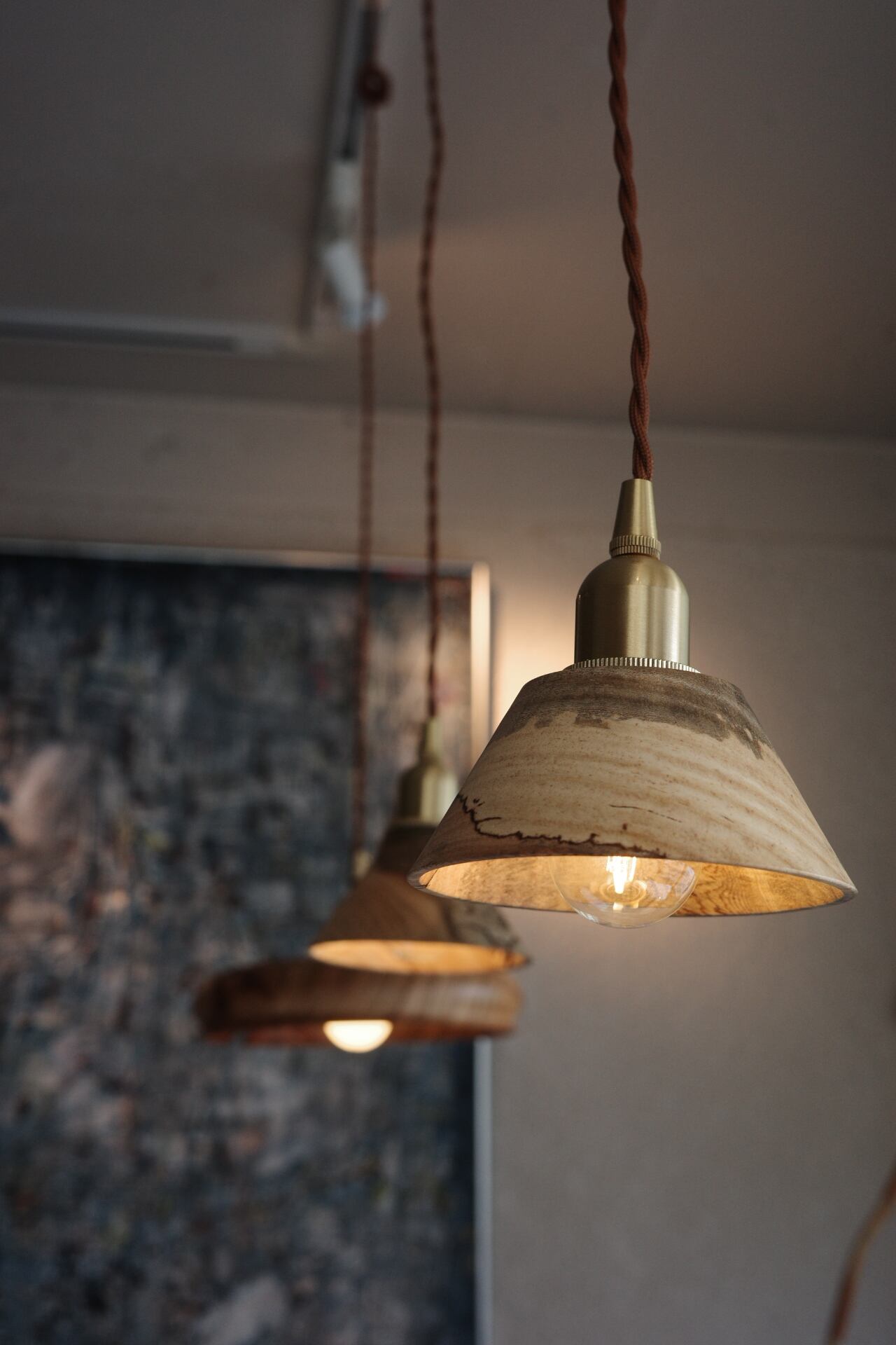 大塚木工さんのランプシェード小。コンパクトながらとても雰囲気があり、お部屋のアクセントとしておすすめです。AB、2種類のうち、こちらはBのお品です。