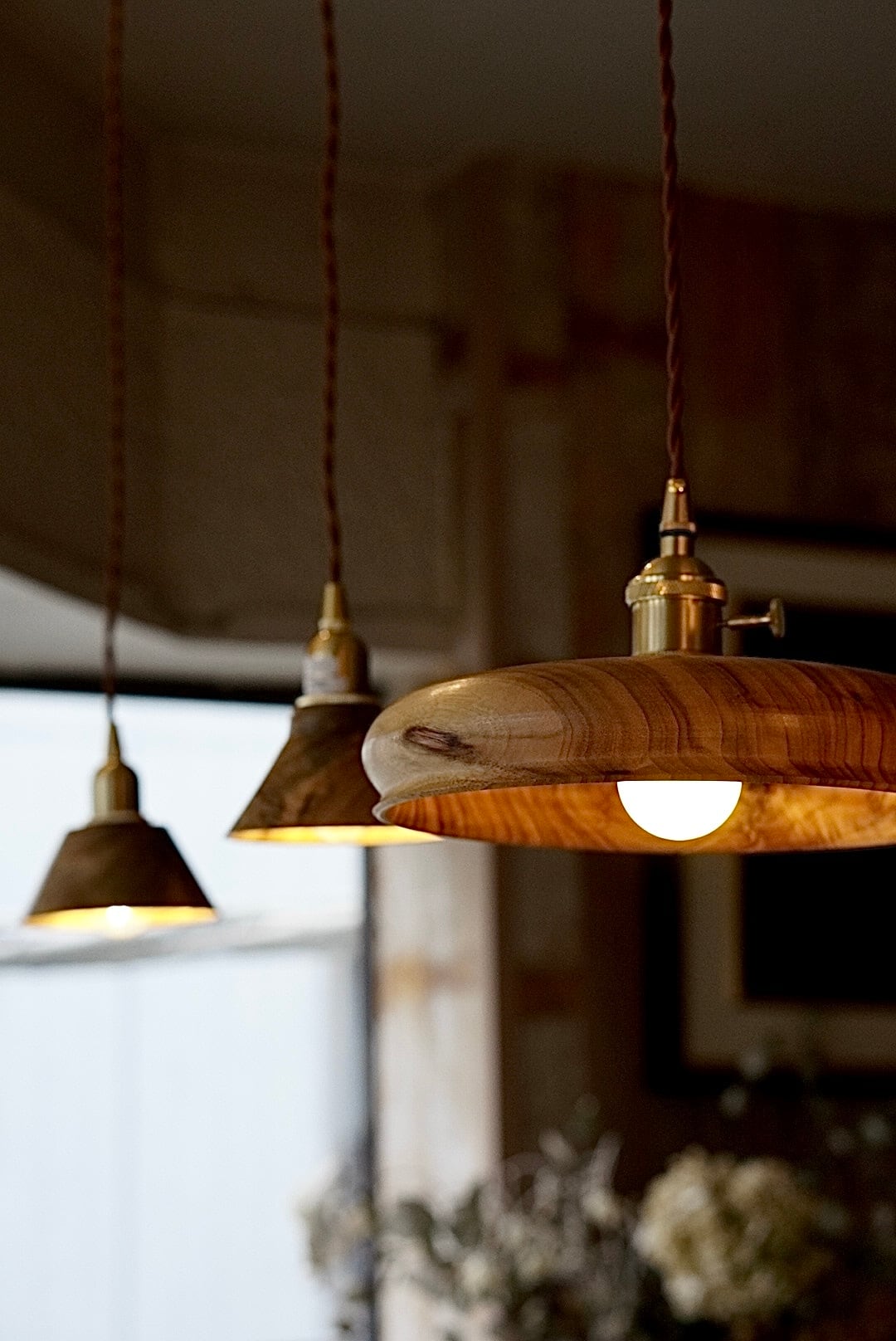 大塚木工さんのランプシェード小。コンパクトながらとても雰囲気があり、お部屋のアクセントとしておすすめです。AB、2種類のうち、こちらはAのお品です。