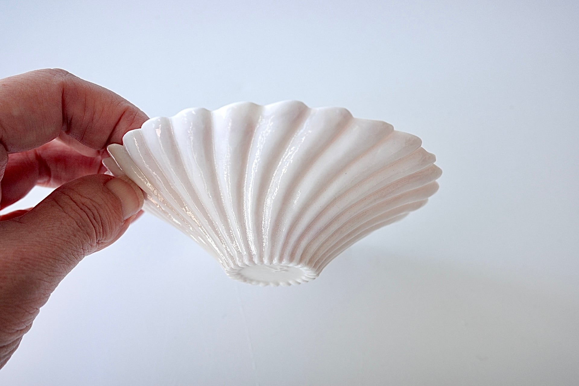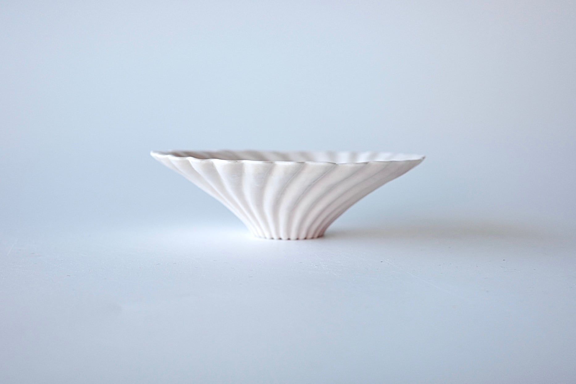 こちらは、A~Hの内、Hのお品。表面は微かにパープルが混じったホワイト、裏面はごくごく淡いパープルが縁部分に陰影のように施されています。