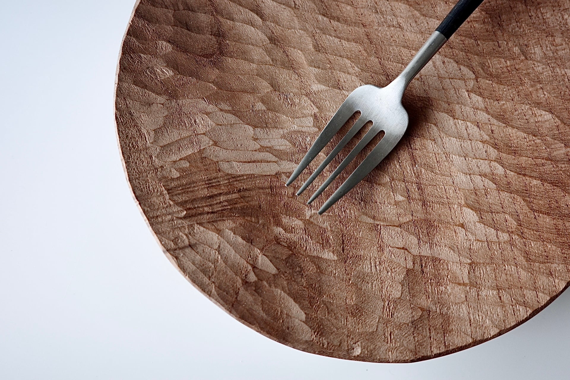 西石垣友里子さんのヤマグルチの木皿。表面に細かい彫りが施された、様々に使える6寸サイズのプレートです。