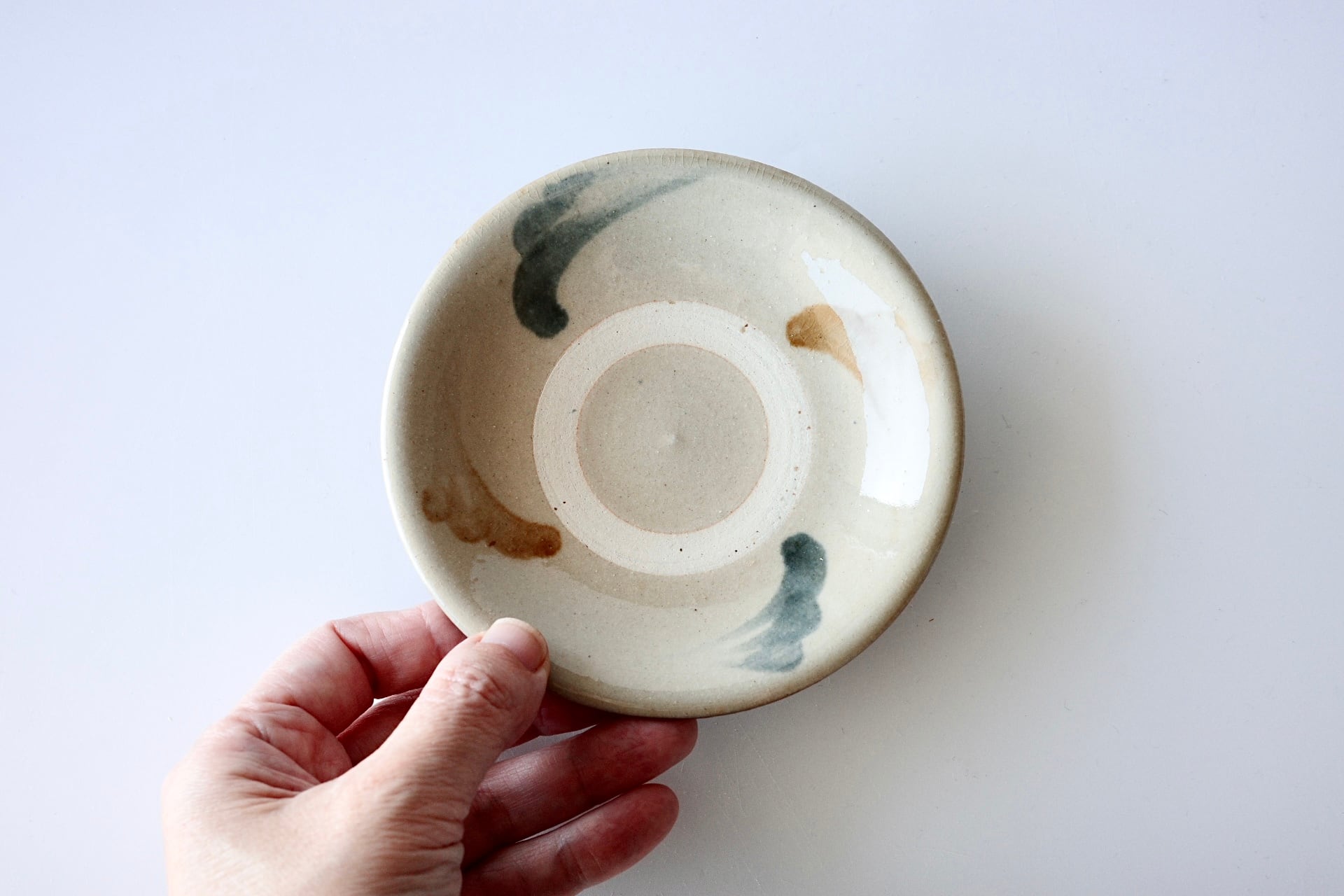 松田米司さんの4寸皿。取り皿にぴったりの、柔らかな絵付けが魅力のお品です。AB、2種類からお選びいただけます。