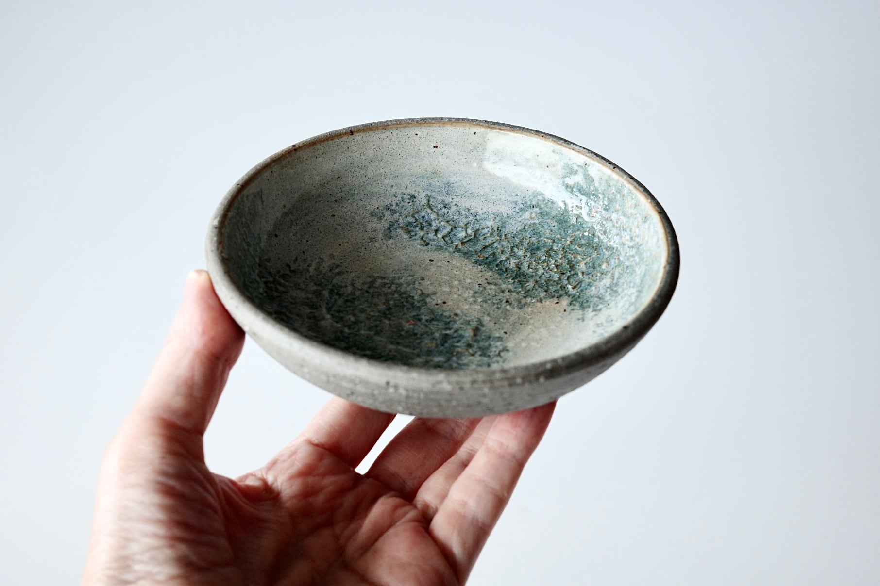 まるか陶工房さんの4寸鉢。小鉢としても、鍋物の取り皿としても、絶妙なサイズ感でさまざまに使える大変おすすめのお品です。こちらはグレー御影土で作られています。ABC、3種類からお選びいただけます。