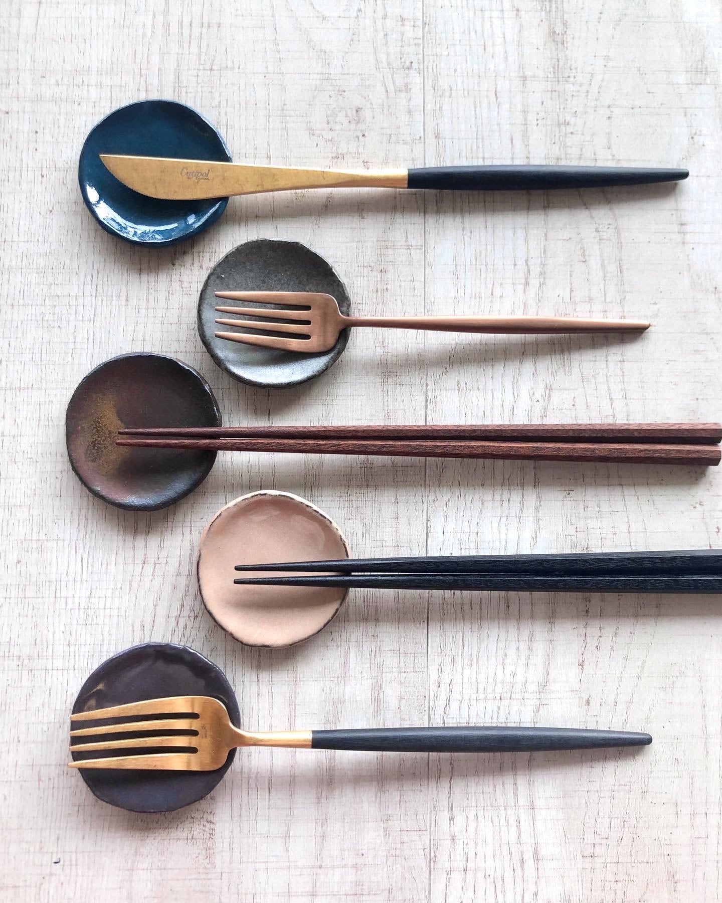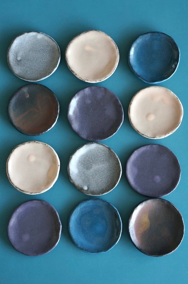 茜陶房さんの豆皿。薬味皿としても、箸置きやカトラリーレストとしても使える、とても便利なお品です。今回、shinkai、akane、kasumi、zakuro、sumireの5色が揃いました。