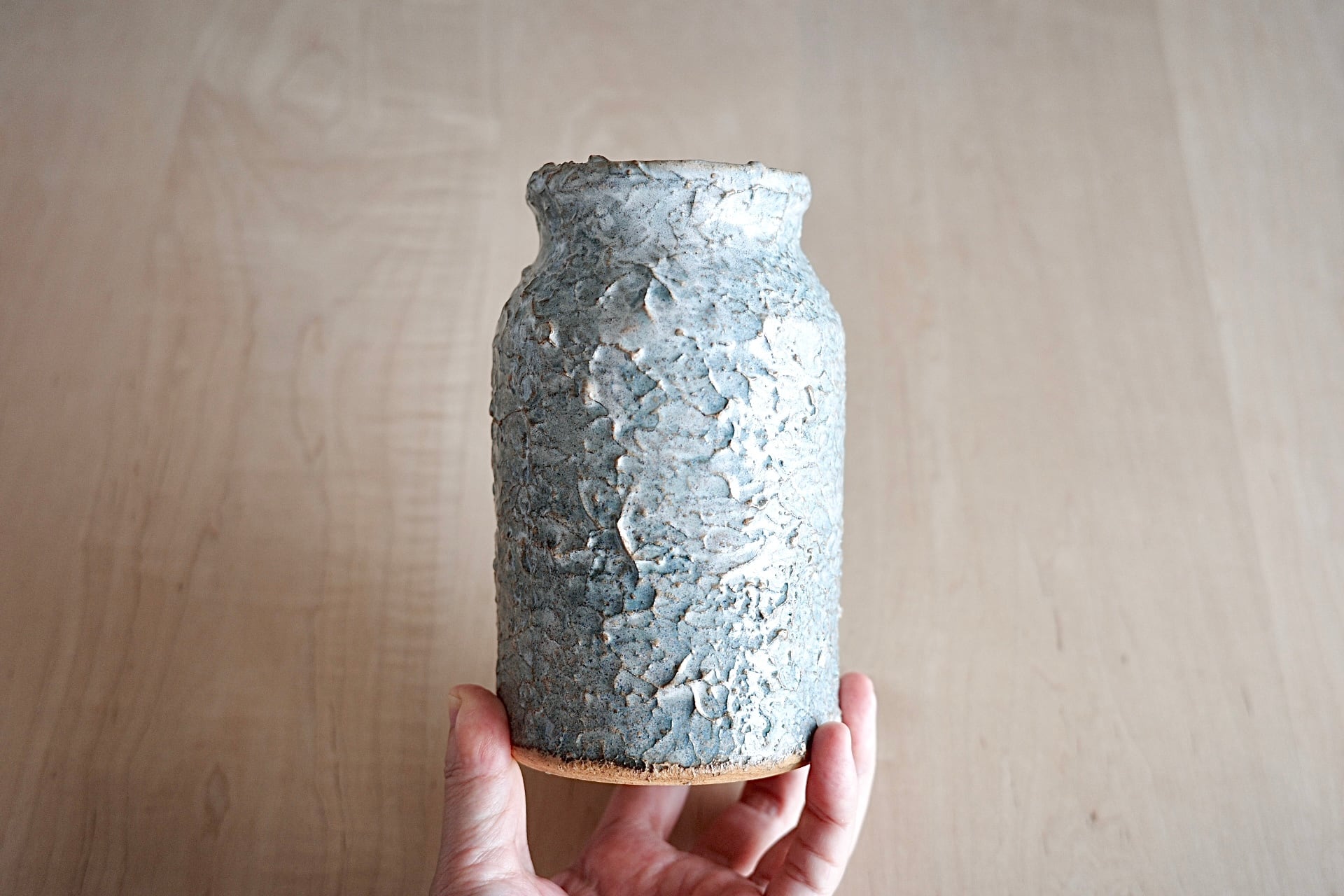2011年に京都造形芸術大学を修了、沖縄に渡り読谷山焼北窯で6年間修業した後独立し、現在は読谷村に工房を構える。作品は、鉱物を混ぜて生まれる青、緑、灰色、茶、などの様々な色と土の質感が交じり合う、一言では形容できない唯一無二の仕上がり。