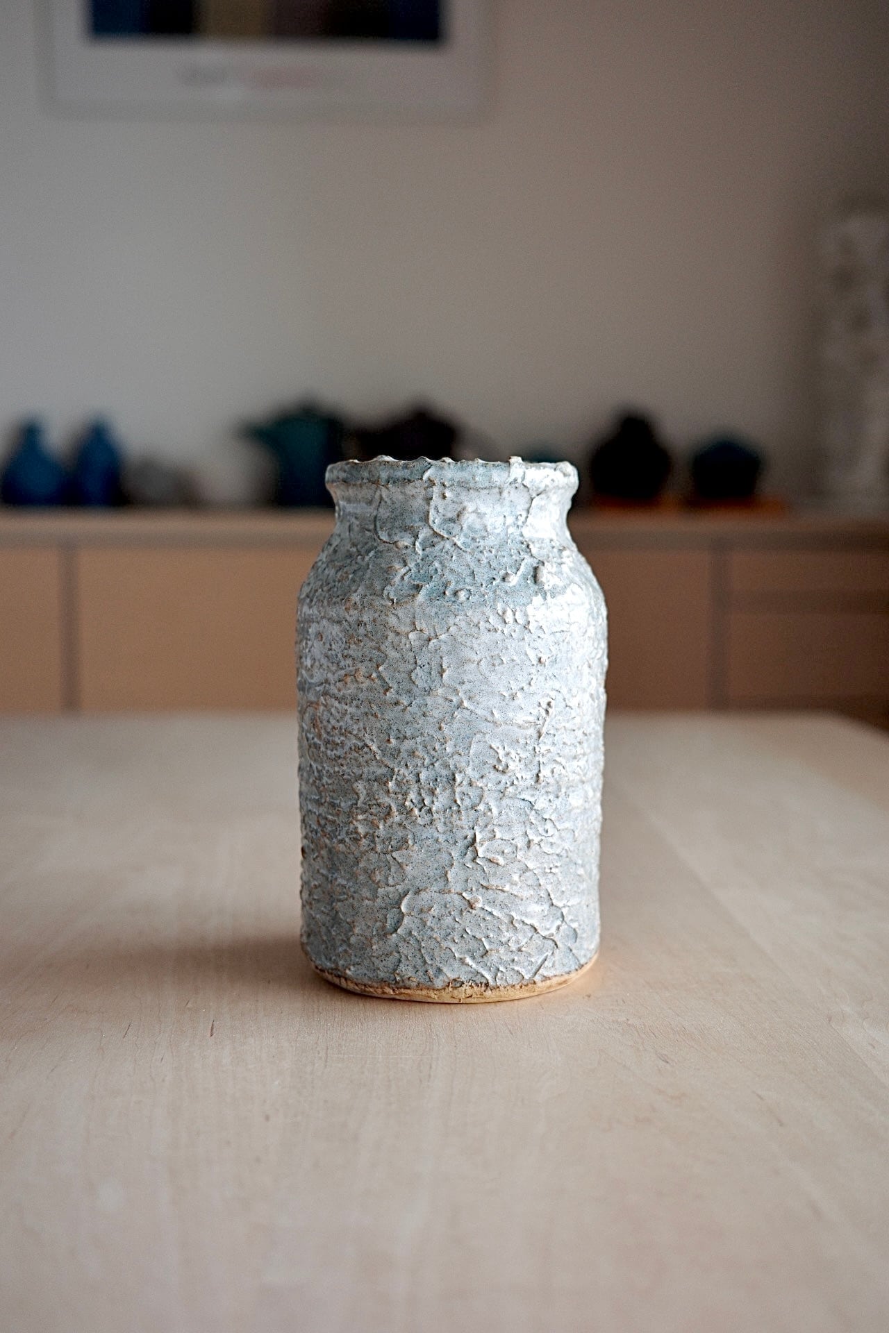 まるか陶工房さんの花器。ドライフラワーとの相性もとても良く、気軽にお花を生けて楽しめます。